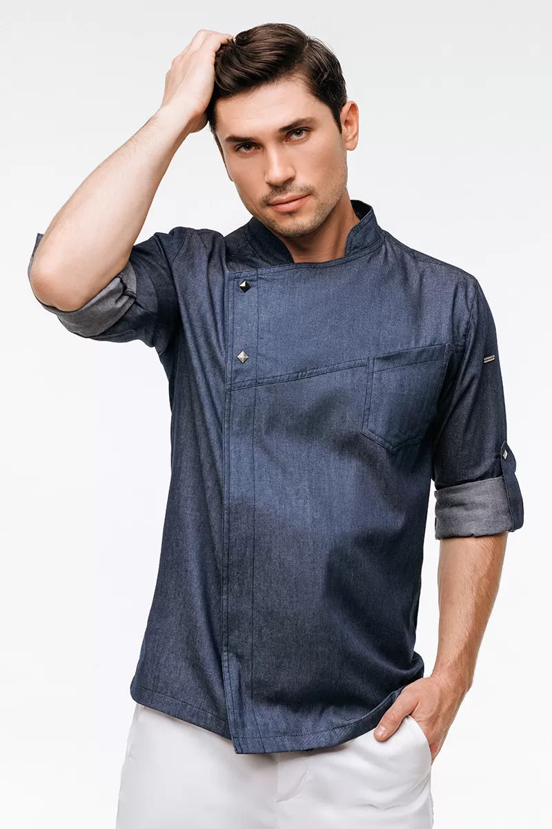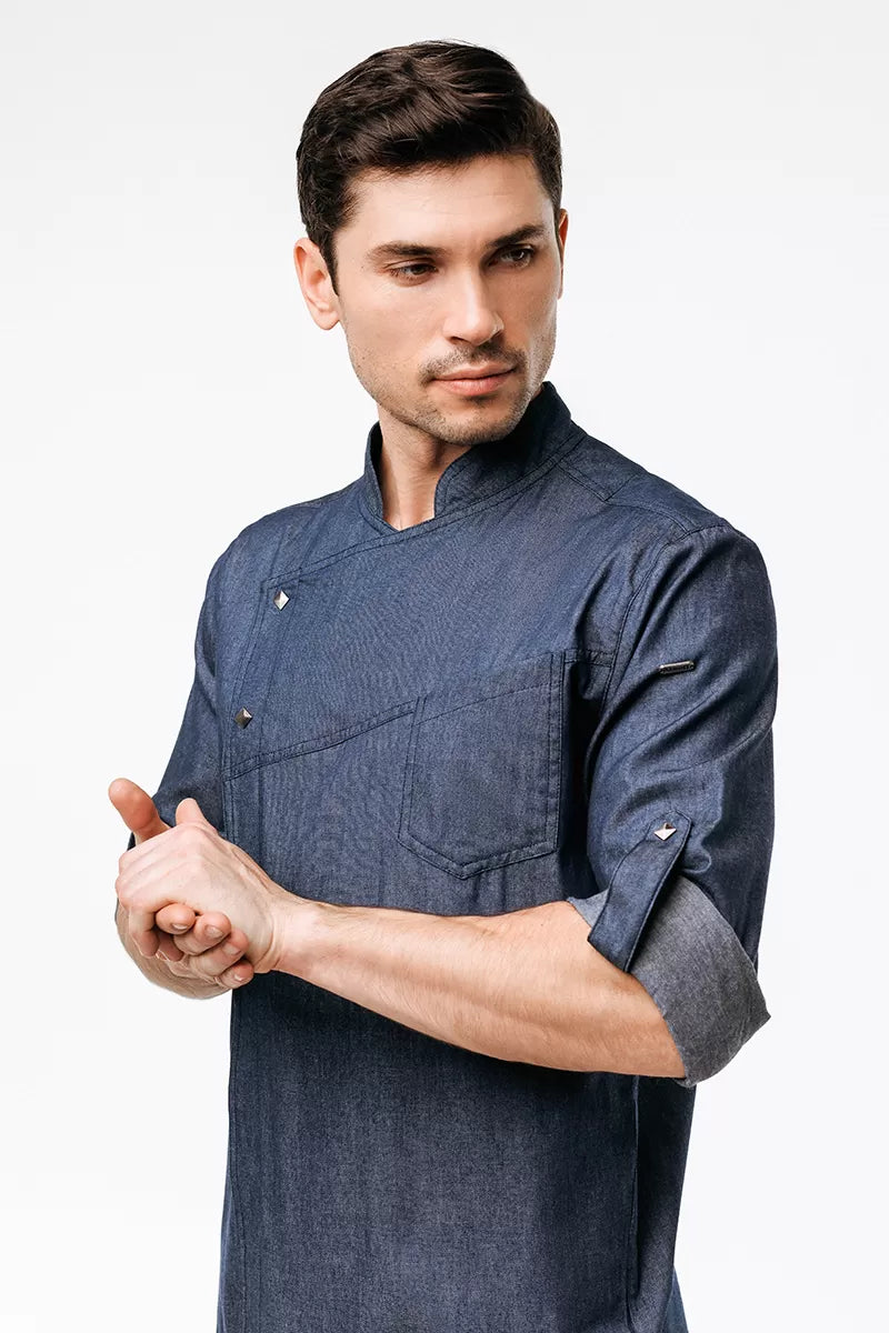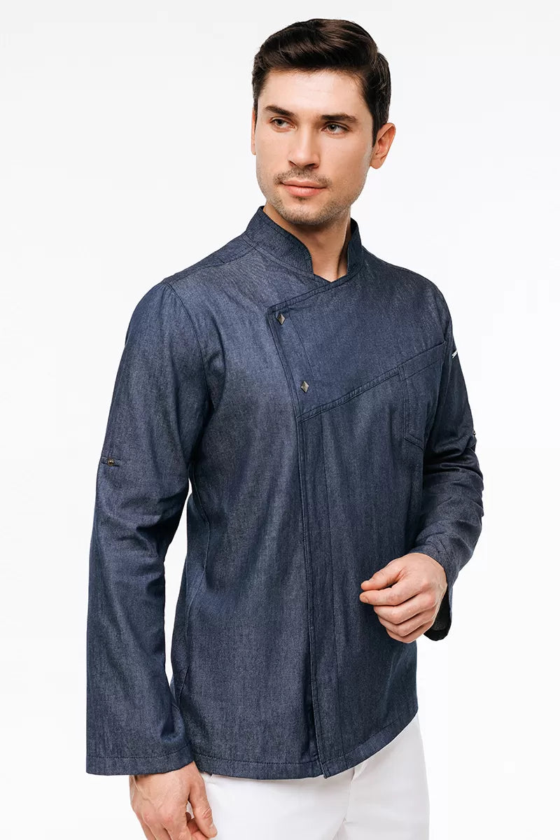 Denim-dyed twill organic cotton is the perfect match for all professional kitchen apparel requirements. The natural fabric is well ventilated and thus inhibits the growth of bacteria. Woven with 3% elastane.